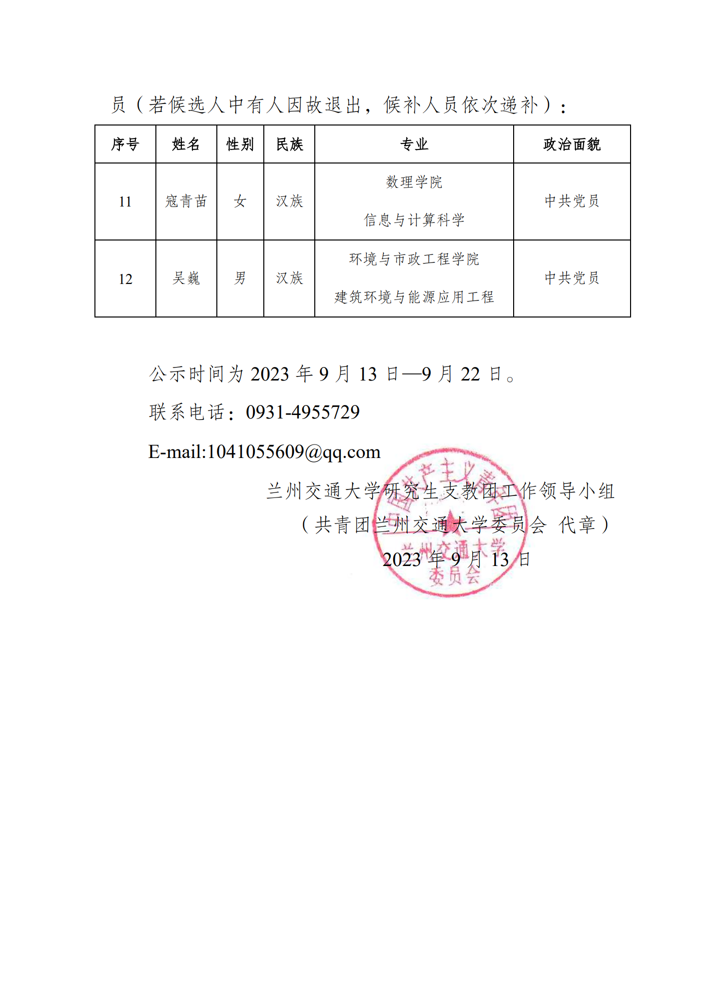 上一条:关于表彰2023 年兰州交通大学暑期文化科技卫生“三下乡”社会实践活动中表现突出的 集体、个人和项目的公示