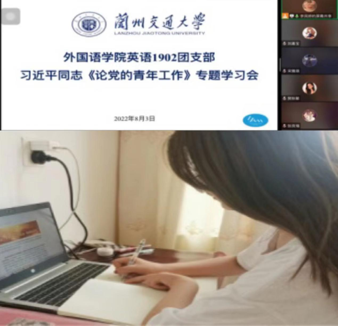 为积极响应共青团中央印发的关于深入学习宣传贯彻习近平总书记《论党的青年工作》的通知,强调共青团长期深入学习《论党的青年工作》的重大政治任务,更好的团结、组织、动员广大青年为实现第二个百年奋斗目标、实现中华民族伟大复兴的中国梦而奋斗,兰州交通大学以“班子建设好、团员管理好、活动开展好、制度落实好、作用发挥好”为标准的校级“活力团支部”以形式多样的线上活动为载体,深入开展《论党的青年工作》专题学习。