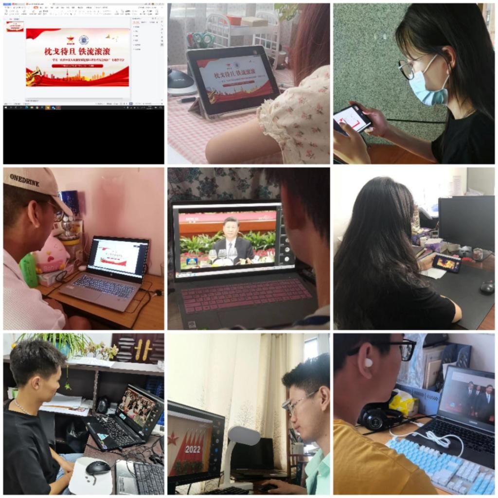 会上,全体学员集体观看7月31日中华人民共和国国防部为热烈庆祝中国人民解放军建军95周年在北京人民大会堂举行的招待会现场视频。