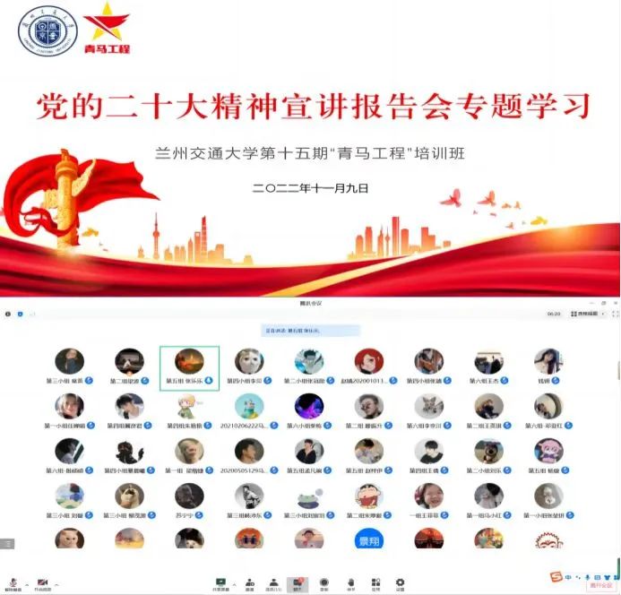 同心绘就宏伟蓝图,奋力谱写青春华章。为全方位、多角度、立体式的贯彻学习党的二十大精神,深入研究二十大提出的重要思想、重要观点、重大战略、重大举措,担当起新时代青年的职责与使命,兰州交通大学第十五期“青马工程”培训班组织收看了甘肃省教育厅所组织的党的二十大精神宣讲报告会直播现场。