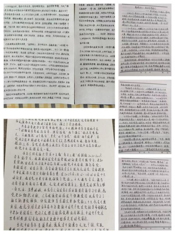 第五小组在第一阶段的学习主要以自主学习为主,各位学员自主学习研读党的二十大报告全文及共青团中央发表的学习党的二十大精神系列文章,观看党的二十大代表专题采访,习近平总书记在庆祝中国共产主义青年团成立100周年大会上的重要讲话并手写心得体会。学员们纷纷表示定会在党的领导下,以新时代好青年应有的姿态,奋进新征程,诠释新使命,创造新业绩。