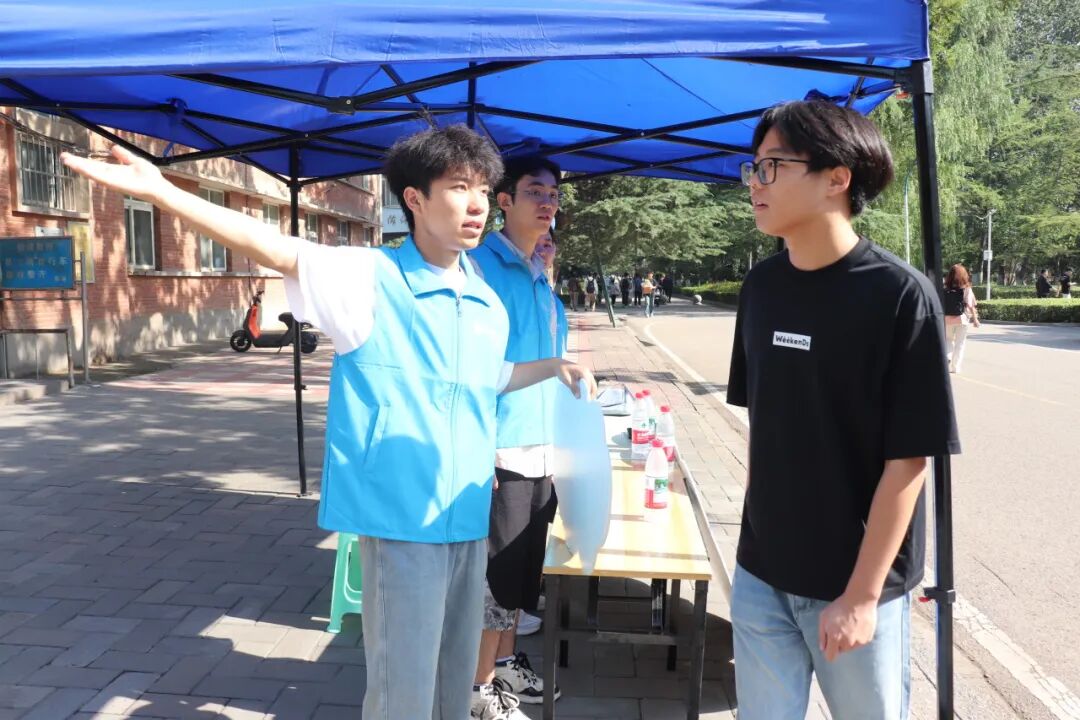 校内各个迎新值班点前,志愿者们以热心护航,持续为新生提供清晰的路径指引和报到流程说明,并及时对报到途中迷茫的同学主动予以帮助。尽管烈日炎炎,志愿者们全力服务,毫不懈怠。