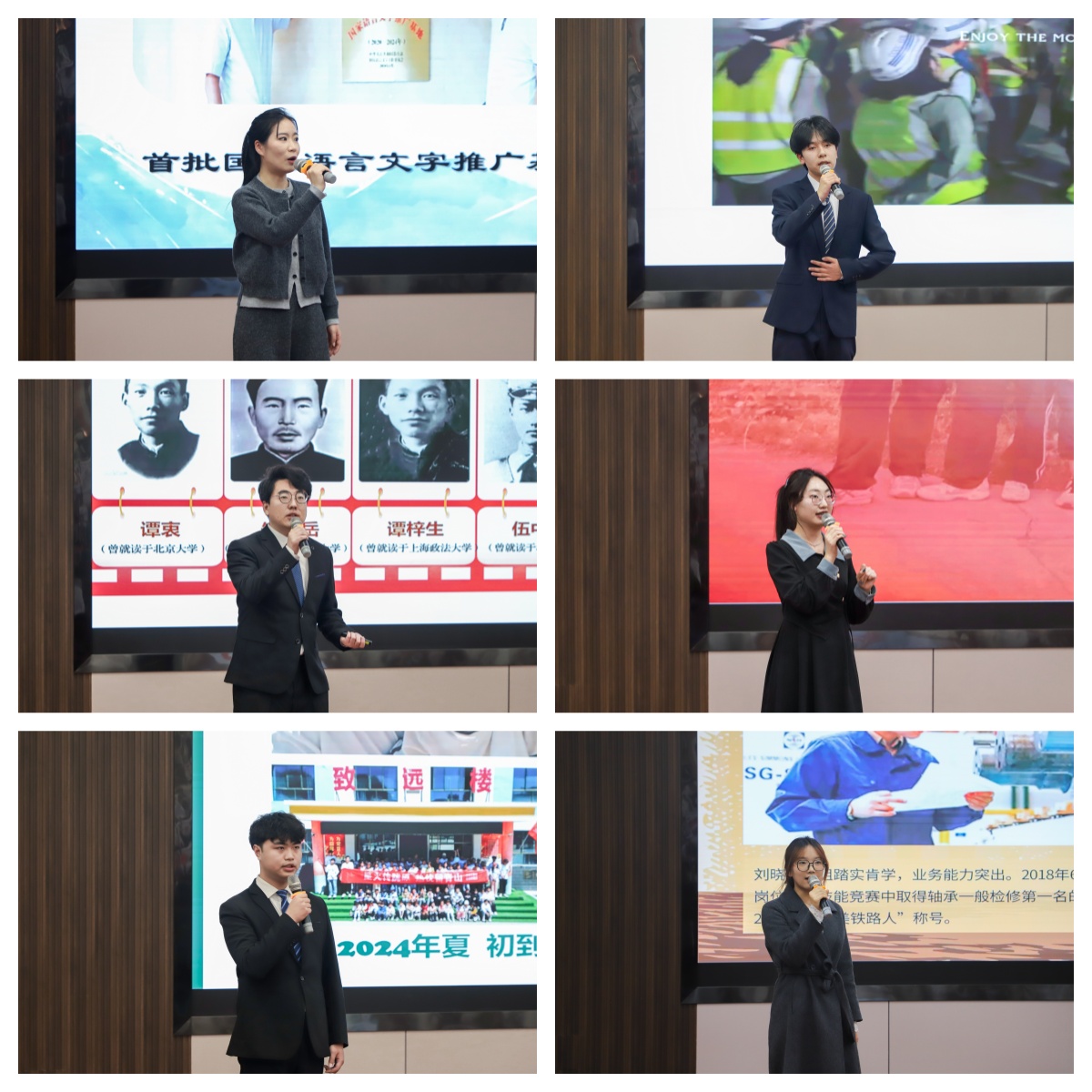 六支特色实践团队现场分享了实践成果和感悟。文学院“同言语 共复兴”实践团发挥专业优势,推广普及国家通用语言文字,助力消除沟通障碍,服务民族团结;铁道技术学院“铁轨上的红色基因——铁路发展史与新时代铁道精神探索”实践团沿着钢铁脉络,挖掘铁路事业红色传统,诠释新时代铁道精神;土木工程学院“一带一路海外行,交通赋能新青年”——马来西亚研学实践团跨越山海,考察“一带一路”国际合作与基础设施建设成果,拓展国际视野;机电工程学院“井冈映山红,交大青年说” 实践团通过实地参观与深入研讨,在历史现场感悟思想伟力,坚定理想信念,传承红色基因;环境与市政工程学院第十四期星火支教团秉持奉献初心,为乡村孩子带去知识与温暖,助力教育公平;新能源与动力工程学院新能源先锋科技助农实践团运用专业技术,探索科技与农业深度融合,推动乡村产业升级。各团队的分享案例生动、数据详实、感悟真切,全面展现了交大学子在社会实践中受教育、长才干、作贡献的成长历程,引发在场师生强烈共鸣。