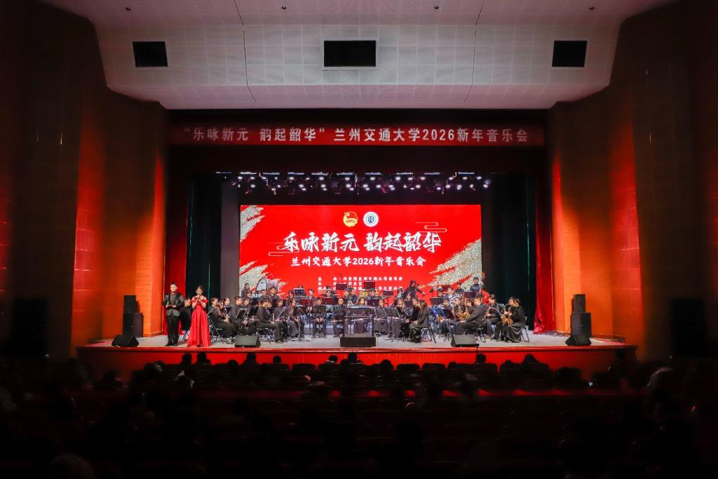 2025年12月14日晚,交大礼堂内乐声悠扬,兰州交通大学“乐咏新元 韵起韶华”2026新年音乐会倾情上演。相关部门负责人、教职工及各学院学生代表共计千余人齐聚现场,在管乐旋律中迎接新年的到来。