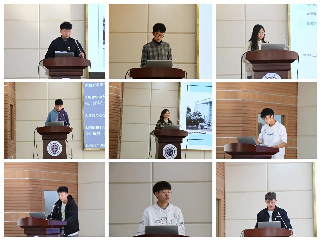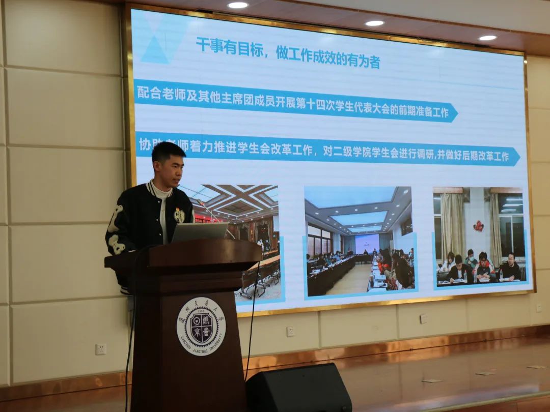 会上,校学生会主席团成员及部门负责人围绕思想认识、道德品行、学习情况、工作成效、纪律作风等方面进行了汇报,同时提出了下一步的工作规划。