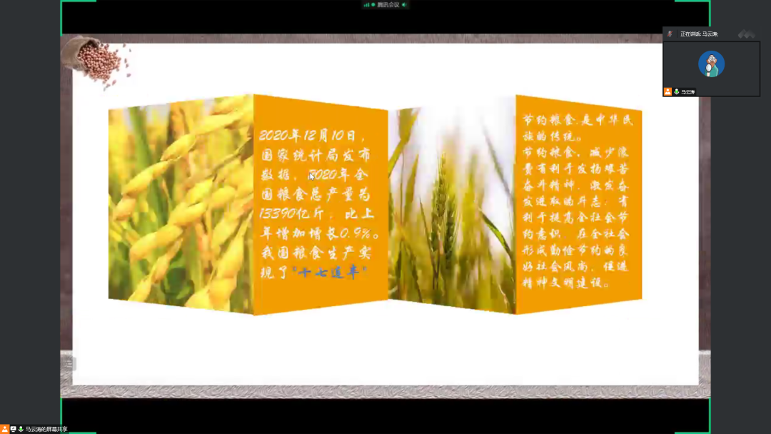 本次活动为线上形式开展,以PPT的形式讲述传承勤俭节约优良传统的重要性,引导同学们从思想上崇尚勤俭节约,以节约粮食为荣,以铺张浪费为耻,同时,通过观看相关宣传视频了解我国粮食现状以及粮食浪费的严重后果,结合线上答题等丰富多样的活动内容倡导大家从身边的小事做起、从现在做起,养成爱粮节粮的好习惯,加强同学们对节约粮食的重视程度。活动还旨在培育新兴消费观念,倡导“吃多少点多少”的理性消费理念,做到食堂不多打、厨房不多做,积极践行“光盘行动”,杜绝“舌尖上的浪费”。