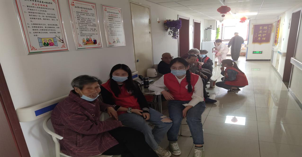 下午三点,七里河畔显现出几抹红色的身影,与初春碧蓝的天空形成一道亮丽的风景线,身穿红色马甲的青年志愿者们经历大约两个小时的车程,到达了七里河爱心托老所。志愿者负责人把志愿者们分成三个小组开始志愿服务活动,托老所里顿时萦绕着欢声笑语。在整个志愿活动开展期间,志愿者们有的到各个房间,陪老人们拉拉家常、讲讲笑话,讲讲养生小知识,给老人们带去欢笑和快乐;有的帮助老人整理内务,打扫卫生,捶捶背,使老人变得轻松;有的到户外和老人聊天,听老人讲讲过去,讨论一下现在,不仅使老人摆脱了寂寞,也使自己受到了教育。托管所工作的阿姨告诉我们,这里年龄最大的老人是一位八十多岁的奶奶,她曾经上过学,丈夫是一位老兵,这位奶奶看到我们志愿马甲后的字样,孩子气地说我们是大学生,激动地站起来敬礼,可爱的样子乐得大家哄堂大笑。在这里,我们也见证了老年群体的弱势,其中不乏听力、视力缺失的,腿脚不便以轮椅代步的,卧病在床,饱受病痛折磨的……看到老人们灿烂的笑容,听到老人们爽朗的笑声,志愿者们充分体会到了本次志愿活动的意义所在--弘扬志愿精神,关注老年群体。