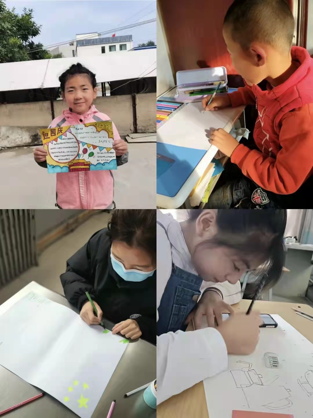 志愿者通过微信、QQ等联系方式引导和帮助孩子动手制作手抄报。在手抄报制作过程中普及爱国知识和党的奋斗历程,让孩子们用实际行动为祖国送去最诚挚的祝福。志愿者与留守儿童在回顾祖国奋斗历程和光辉事迹中,不断激发民族自豪感,厚植爱国、爱党的情怀。